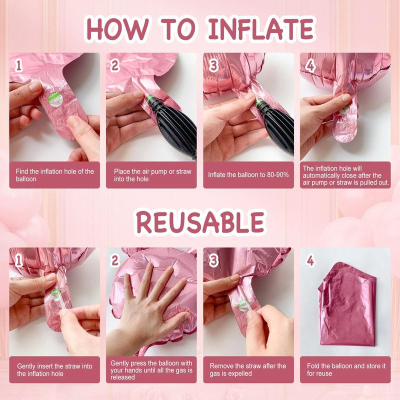 - 【Easy to Use】Just use a straw or an air pump to inflate the foil balloons, pinch the balloon nozzle flat after inflation and they will be sealed automatically. There are holes at the top for threading, you can thread the balloons and hang them on a balloon wreath or balloon arch. You can also use dot glue to hang it on the wall or wherever you need it. It will be the perfect addition to a birthday celebration.