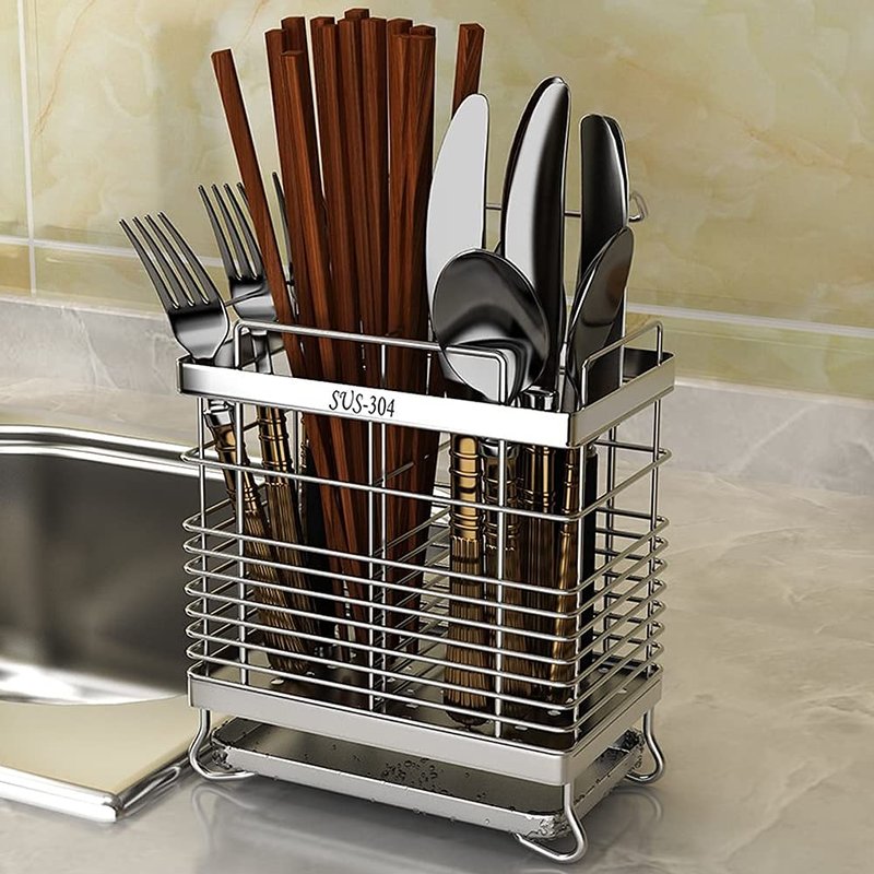 kaileyouxiangongsi 304 Stainless Steel Hanging 2 Compartments Mesh Utensil Drying Rack/Chopsticks/Spoon/Fork/Knife Drainer Basket Flatware Storage Drainer (Square)