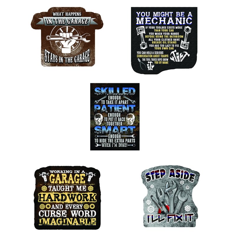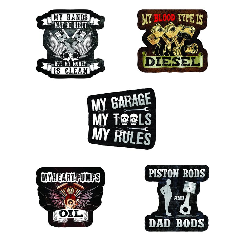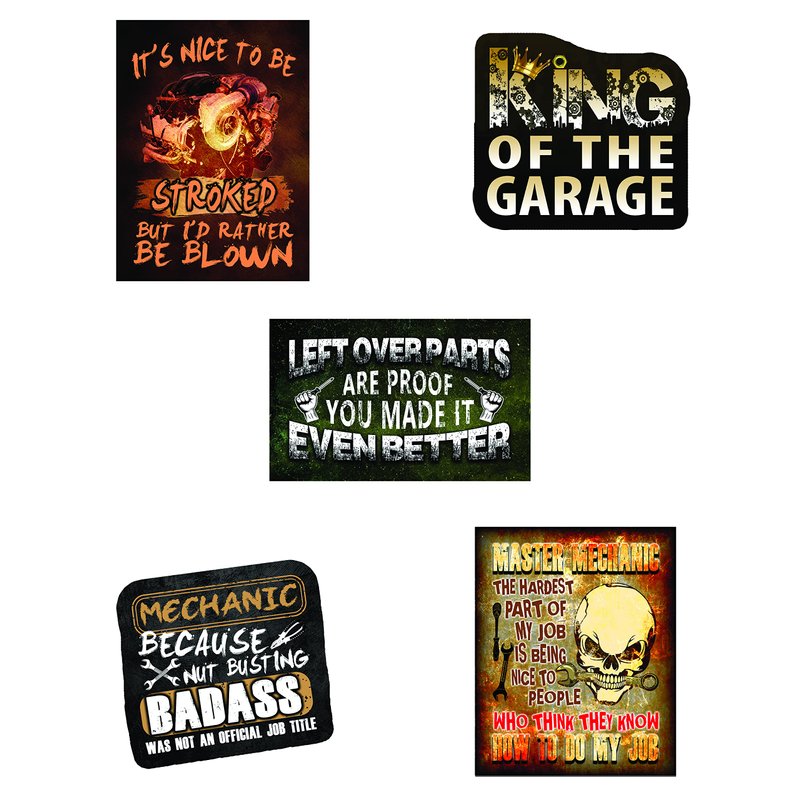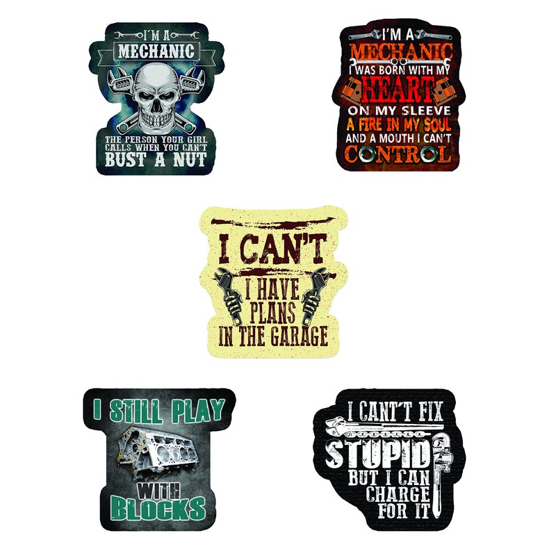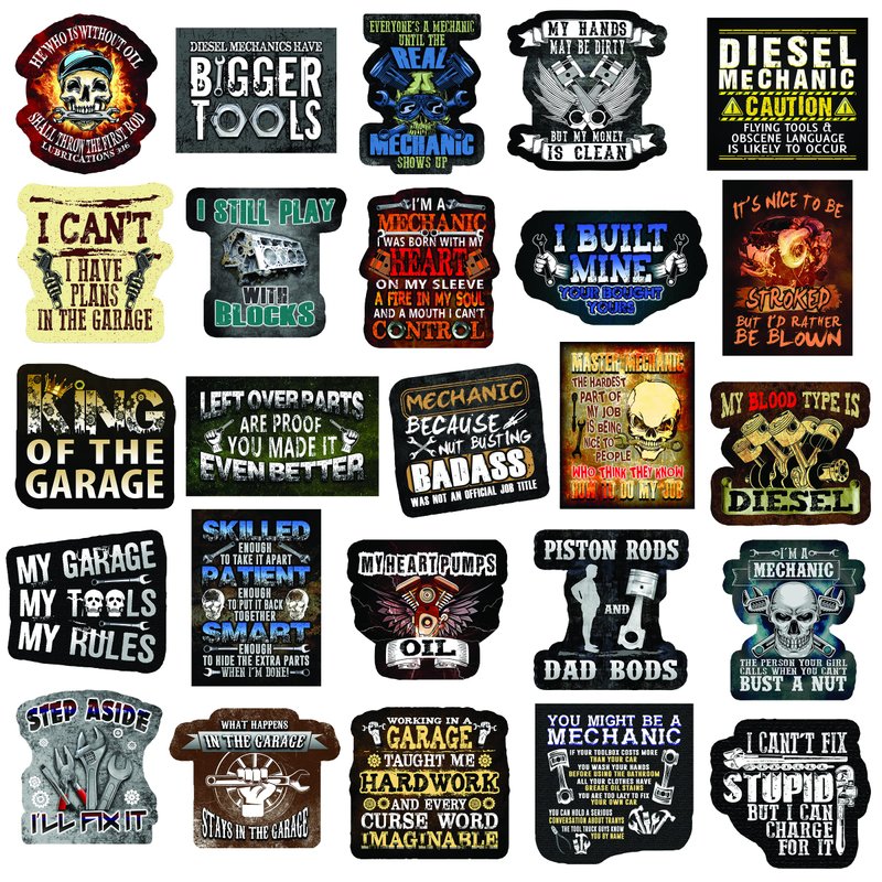 - We have a great mix for any diesel mechanic. Our sticker packs are suitable for both men and women, and are great for a laugh on any work site. These mechanic accessories contain such themes as I Built Mine You Bought Yours, I Can’t I Have Plans in The Garage, and My Garage My Tools My Rules.