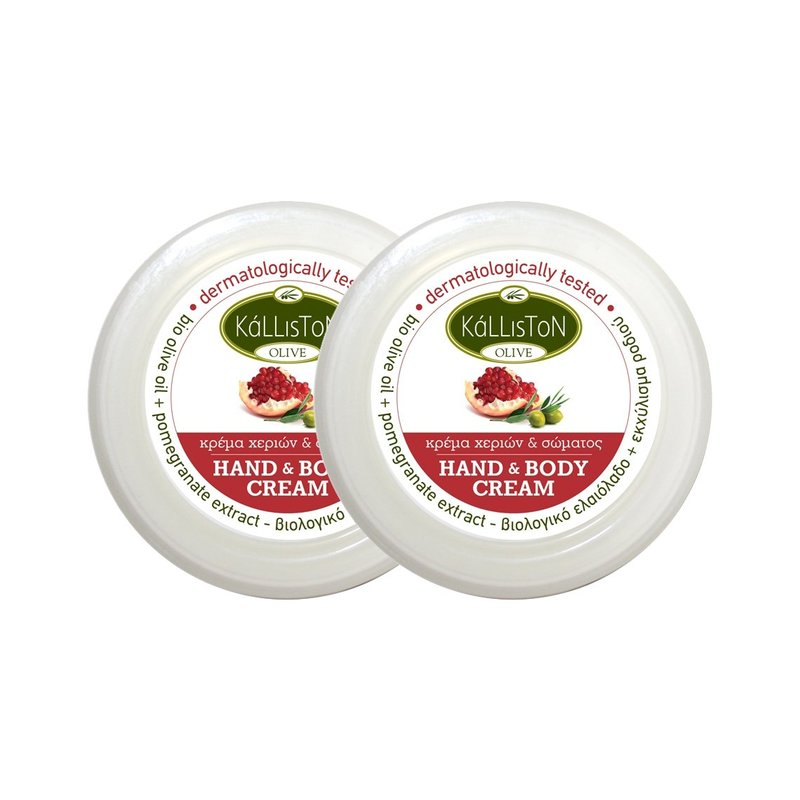 Kalliston, Organic Olive Oil + Pomegranate Extract Cream, Hand & Body Cream, Dermatologically Tested, Made in Ancient Crete, Greece, 2.54 oz Each, Pack of 2