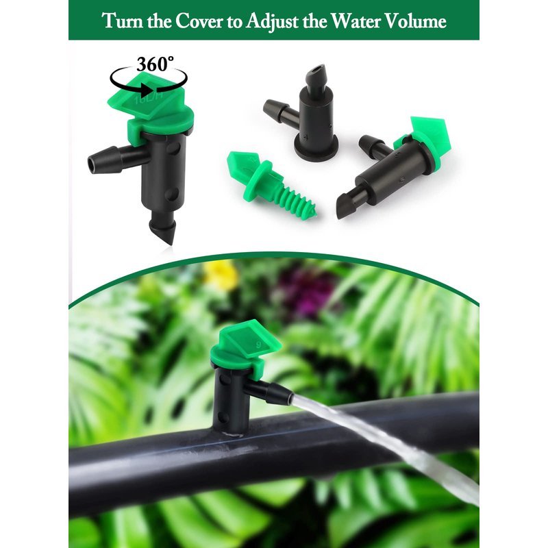 - Practical design: equipped with shut-off valves and 2 barbed pipes in large diameter, these drip emitters can provide stable moisture for different crops, making your garden more alive.