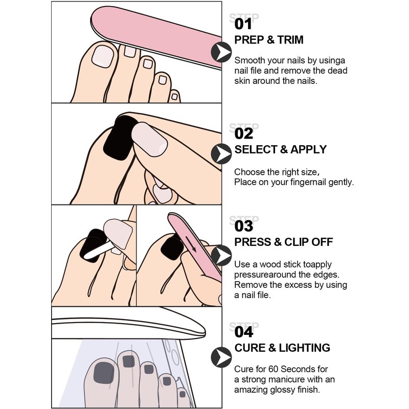 - Easy to Use: The gel toenail wrap stickers are easy to put on, file down, and cure by UV light. You can get salon-quality nail art in just a few minutes. Removal is also quite easy, peel them off with a wooden stick or fingers.