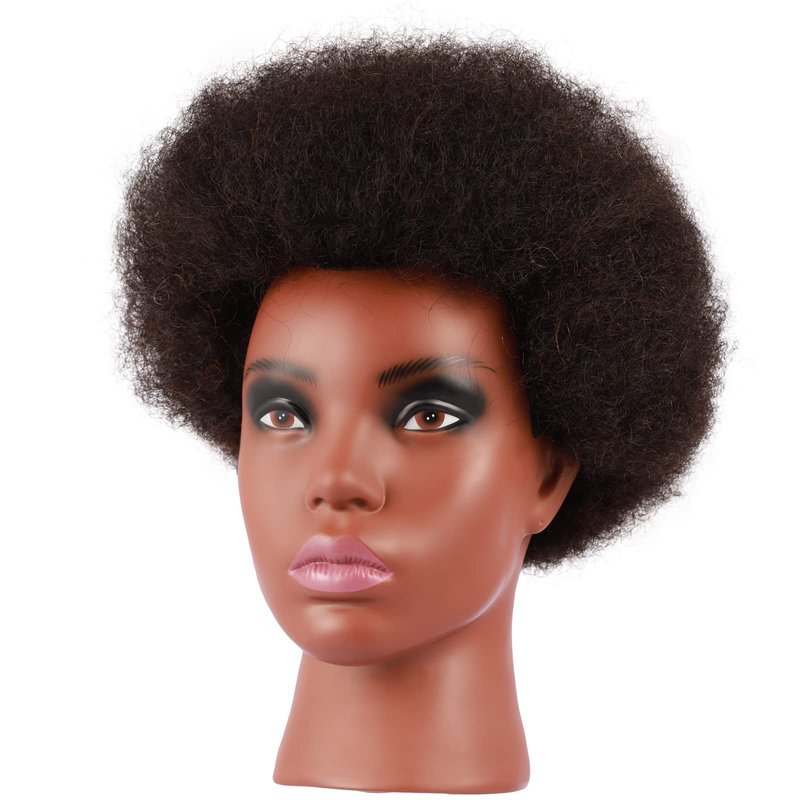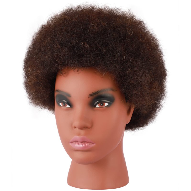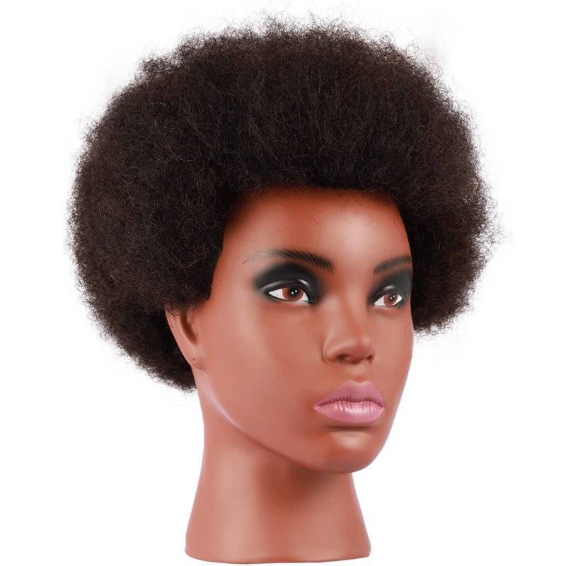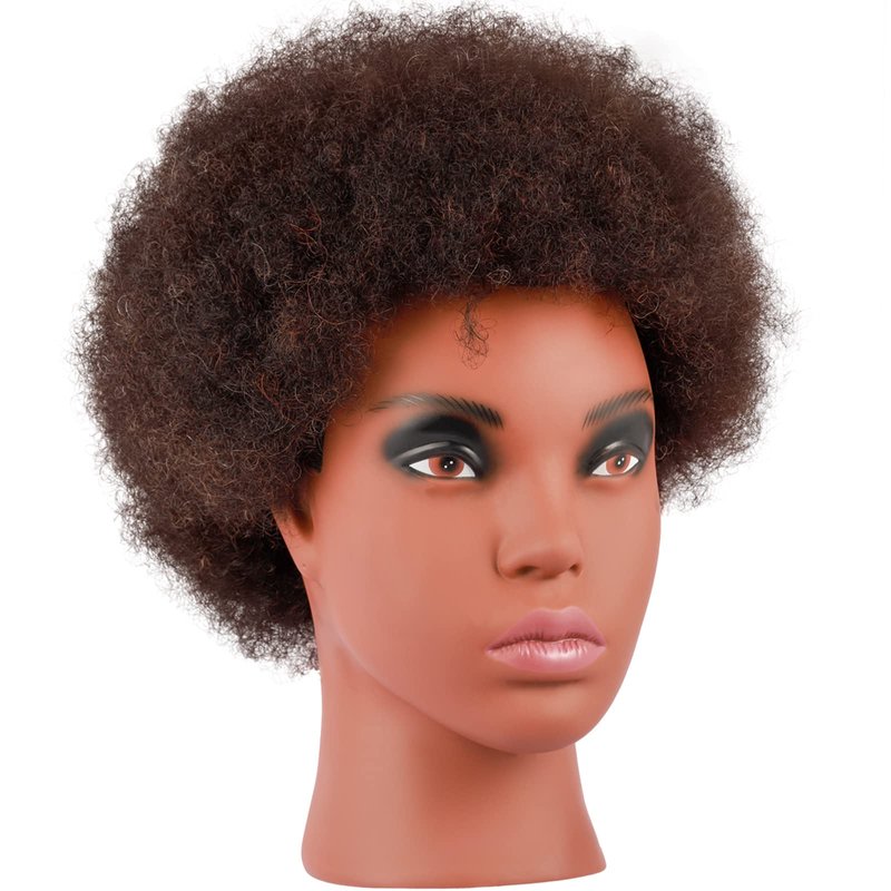 - Realistic Afro Hair Texture: Features dense, curly, Afro-textured hair, life-like head size, ideal for practicing techniques on natural curls and coils, 100% real human hair, 9-10 inches individual hair strands around entire head, more fuller hair volume.