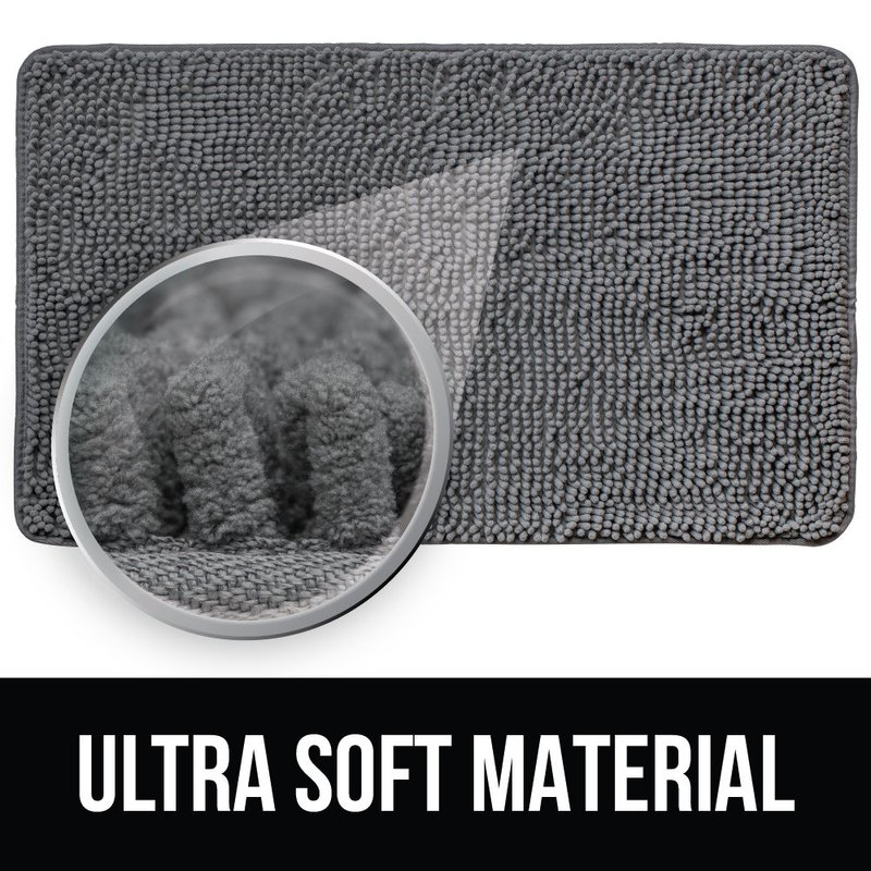 KANGAROO Luxury Chenille Bath Rug, 30x20, Extra Soft and Absorbent Shaggy Kids Bathroom Rugs, Machine Wash Mat, Strong Underside, Plush Carpet Mats for Tub, Shower, Bathtub and Bath Room, Gray