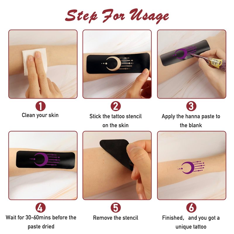 - 2、our Henna Tattoo Stencil Kit, made of high-grade pvc, safe and non-toxic to humans, if you are careful enough when using it, you can reuse it many times.