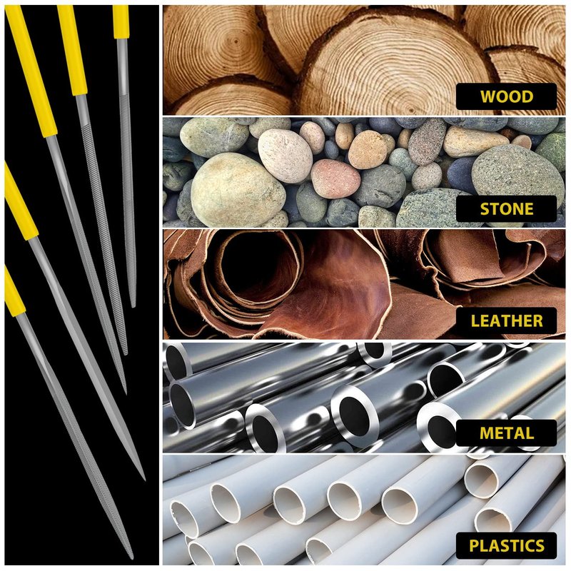 - 【Widely Use】- This small hand tools needle file set can use for removing, refining, reshaping and scraping projects. They are perfect for shaping wood, metal, jewelry, mirror, glass, tile, ceramics, leather and plastic that require detail precision work on small surfaces and tight areas