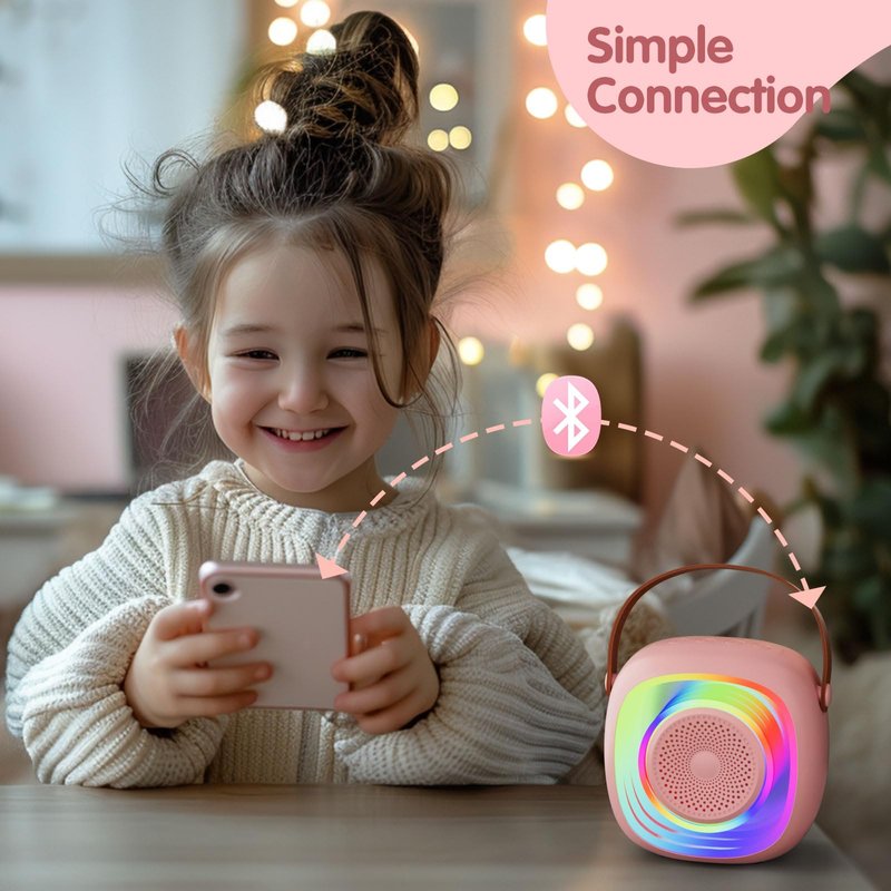 Karaoke Machine for Kids, Mini Portable Bluetooth Karaoke Speaker with 2 Wireless Microphones and Lights, Birthday Gifts for Girls Ages 4, 5, 6, 7, 8, 9, 10, 12+(Pinkcolor)