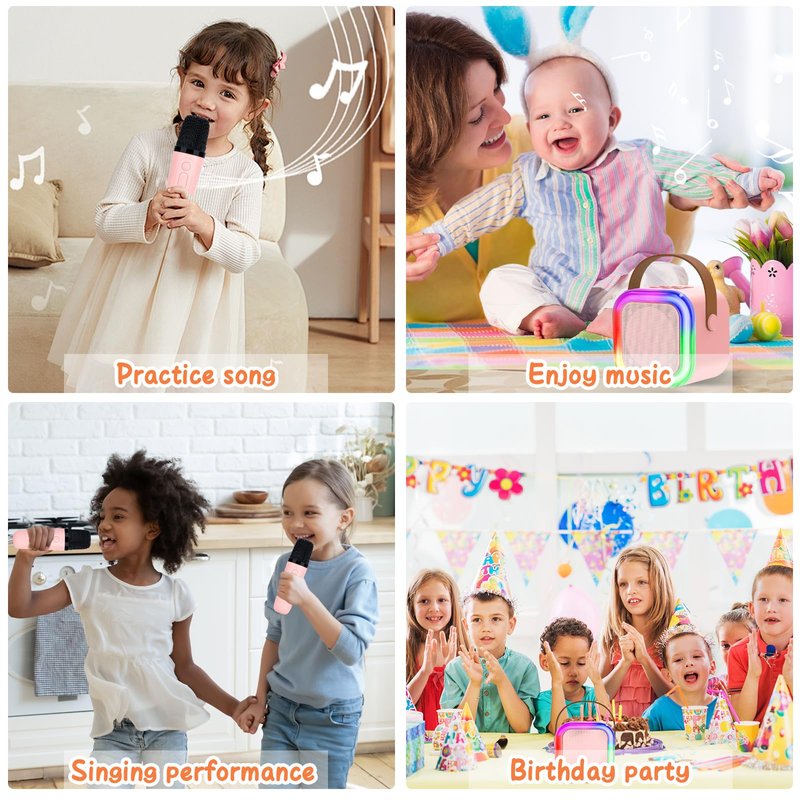 - Interactive Karaoke Machine for Kids :Unleash your child's inner star with our karaoke machine for kids! This portable karaoke machine for kids features a high-quality kids karaoke microphone and vibrant LED lights, creating an exciting karaoke experience. Perfect for birthdays, Christmas, and other special occasions, this kids karaoke set is an ideal gift for kids who love to sing and perform.