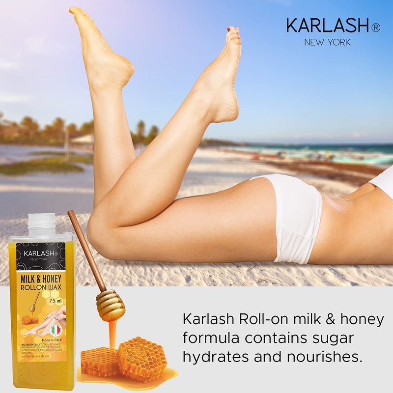 Karlash Professional Roll On Wax, Depilatory Hair Wax Removal for Body Hair, legs, arms hair Removal Wax Cartridge 75ml - Made in Italy - 2 Pieces (Honey)