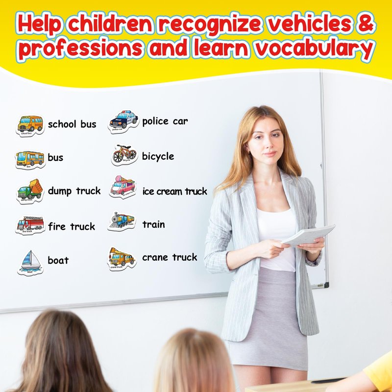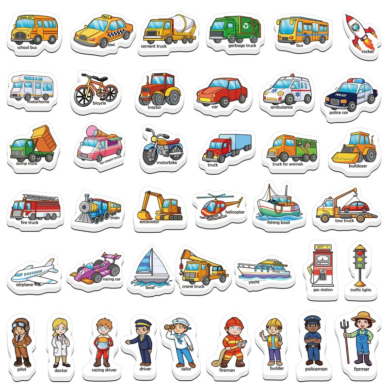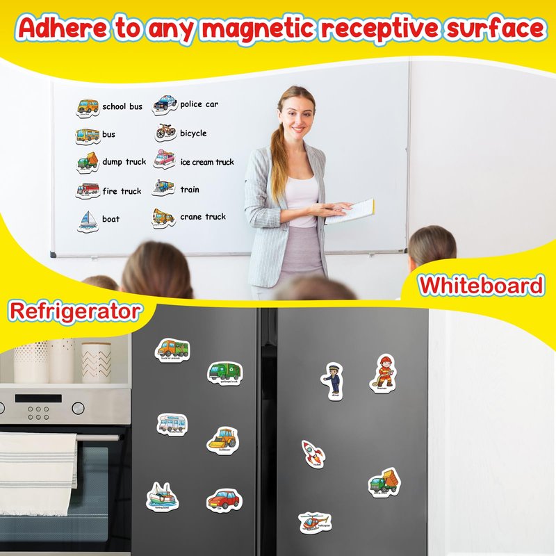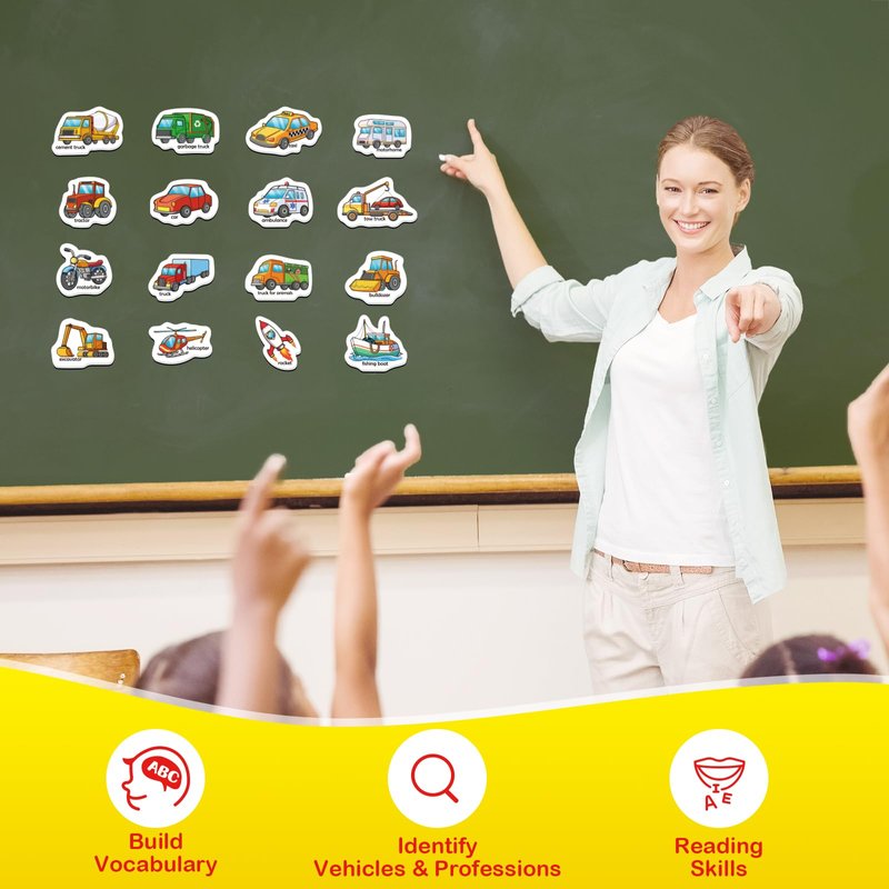 - 【Learning Game for Kids】Teachers or parents can use transport magnets to introduce children to various transports & professions. Let children learn to read transport & profession words and improve children's reading, spelling and writing skills. This refrigerator magnet is a great learning game for boys and girls ages 3 4 5 6 years old.