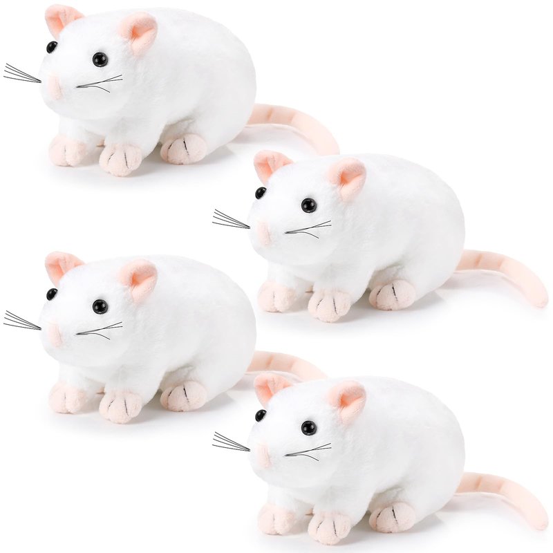 Kasyat 4 Pcs Fake Rat Stuffed Animals 7 Inch Fake Mouse Plush Toys Soft Cuddly Stuffed Mouse Realistic Rat Plushies for Christmas Costume Accessories Birthday Party Favors Prank Props(White)