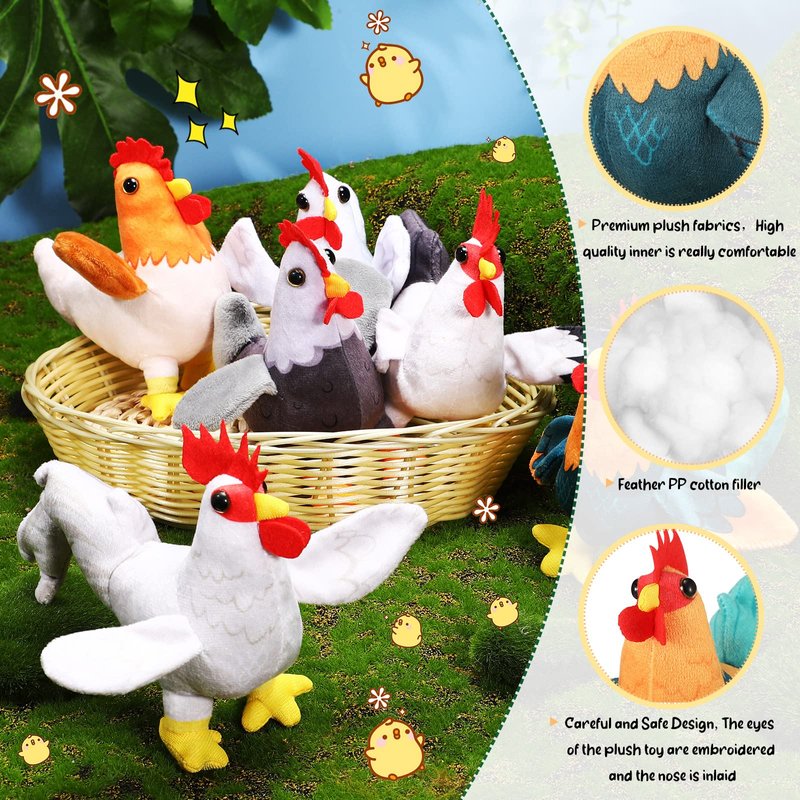 - Package Includes: you can get 6 lovely animal plush toys, including hens in different styles, enough to meet your needs for everyday play and to share with your family and partners
