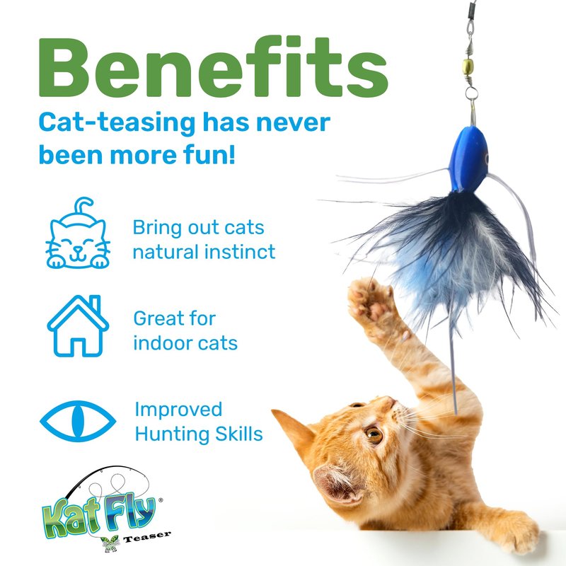 Great exercise for your cat. They will think it is a real bug flying around! KatFly teasers easily connect to any cat teaser wand. Add to your cats' collection.