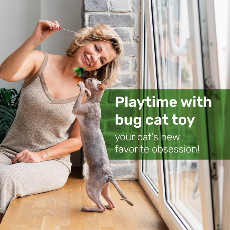 Elevate your cat's playtime to a whole new level with Katfly's bug cat teaser toy refill. Measuring approximately 2 inches, this toy is designed to keep your feline friend engaged and entertained for hours on end with its real feathers. This versatile replacement is a must-have for your cat's toy collection, perfect as a refill for popular cat wand systems. Katfly's cat teaser toy is not just fun; it taps into your cat's natural hunting instincts. Made from real feathers, it encourages your cat to pounce, chase, and swat, providing both physical and mental stimulation. Interactive fun is at its best with the Katfly cat wand toy for indoor cats. Easily connects to top selling cat teaser wands for captivating play sessions with your furry companion, fostering a deeper bond between you and your cat. With this attractive cat toy refill attachment, you can keep your cat engaged and entertained day after day. Whether it's chasing, pouncing, or batting, your cat will have a blast, making this toy one of the best solutions for banishing cat boredom. Upgrade your cat's playtime experience with Katfly's bug cat teaser toy refill today!