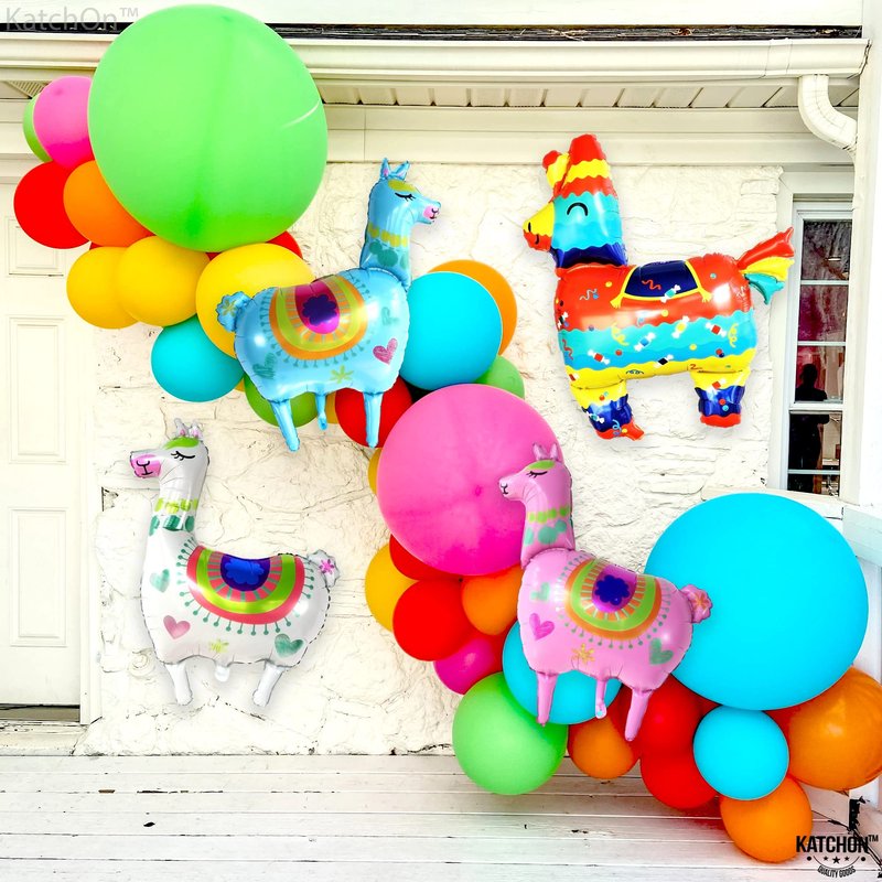KatchOn, 4Pcs Llama Balloons for Birthday Party - Giant 39 Inch | Llama Birthday Balloons for Llama Birthday Decorations | Alpaca Foil Balloons for Fiesta Party Decorations | Llama Party Decorations