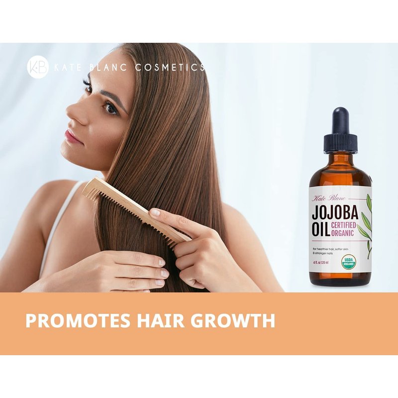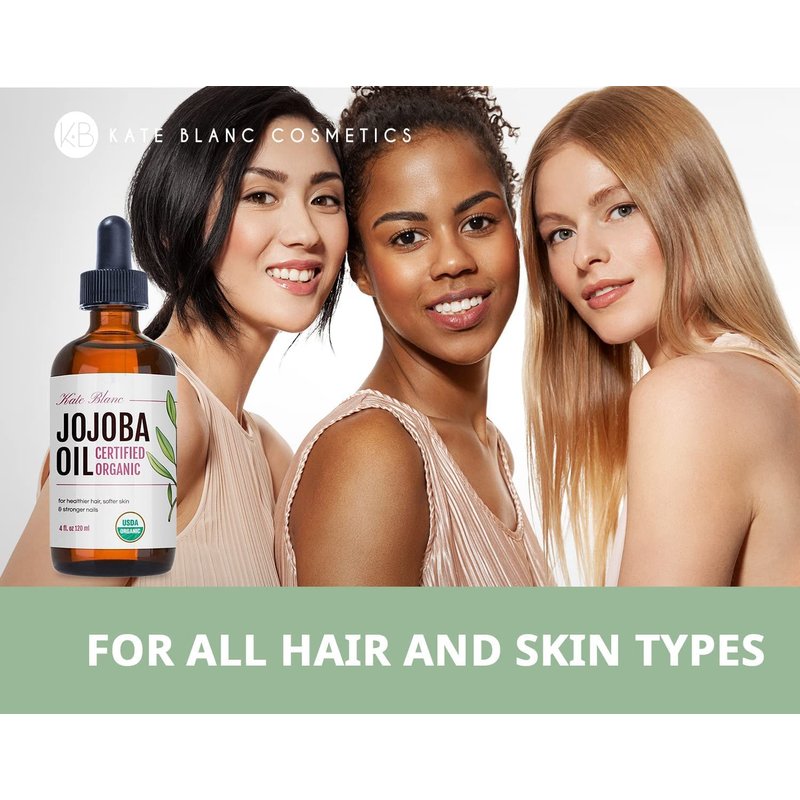 - ORGANIC JOJOBA OIL FOR HAIR - Kate Blanc’s Organic Cold Pressed Jojoba Oil (Aceite De Jojoba Oil) is certified by USDA and is pure, natural, and hexane free. Jojoba oil organic for skin is commonly used as body oil for dry and normal skin and hair oil for dry hair.
