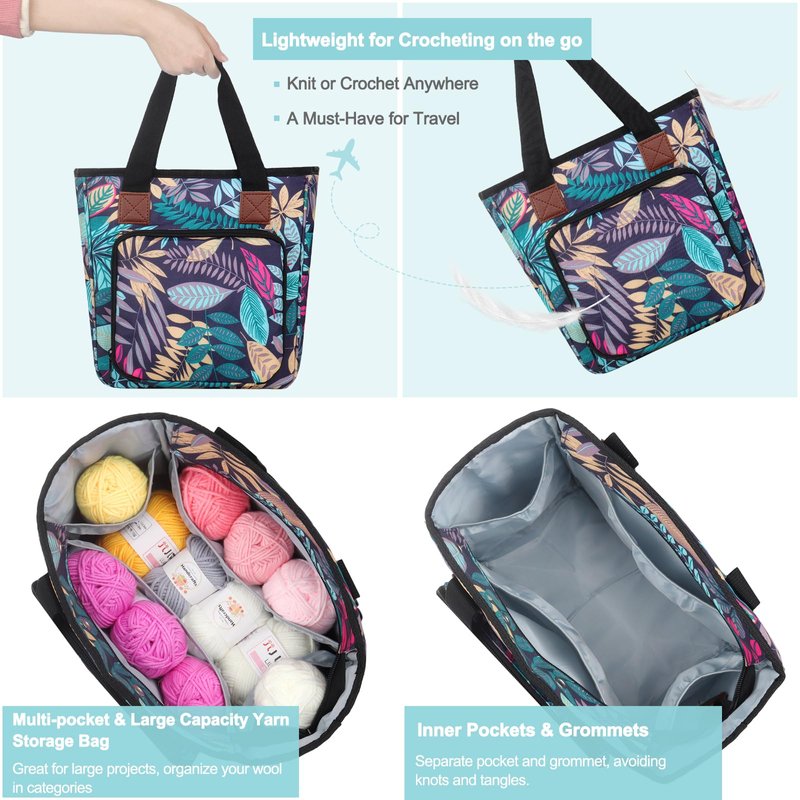 - Ideal Crochet Beginner Gifts:💖 Multipocket knitting bag allowing you to better store and organize your knitting tools. Various clever designs add a lot of convenience to your unfinished knitting process. Our pretty yarn organizer bag is a gift to fit any occasion, especially Birthday, House Warming, Weddings, Mother's Day or Thanksgiving Day, Christmas Day.