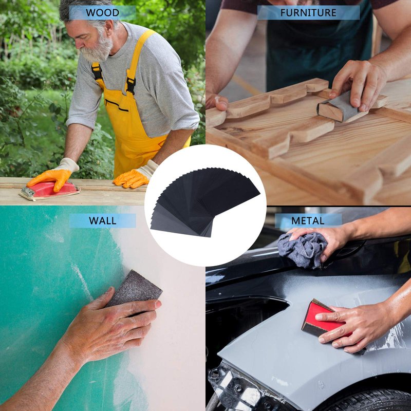 - Size and Packing : Sandpaper is 9x3.6inches(23x9cm). Packing is total 36 sheets sandpaper block and 2 hand sanders. 3 sheets of each grit(12 grits), 120/240/320/400/600/800/1000/1200/1500/2000/2500/3000, meet your different needs.
