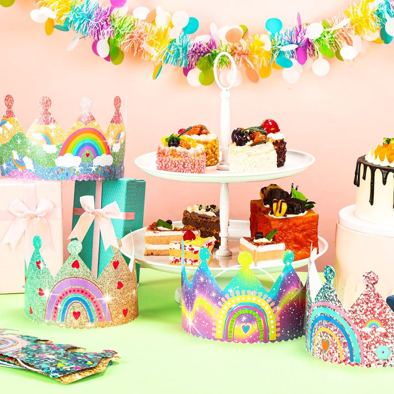 - Attractive Rainbow Designs: these party crowns are designed with colorful rainbows and glittery backgrounds, can be widely applied for kids parties decorations; Make good memories for your children