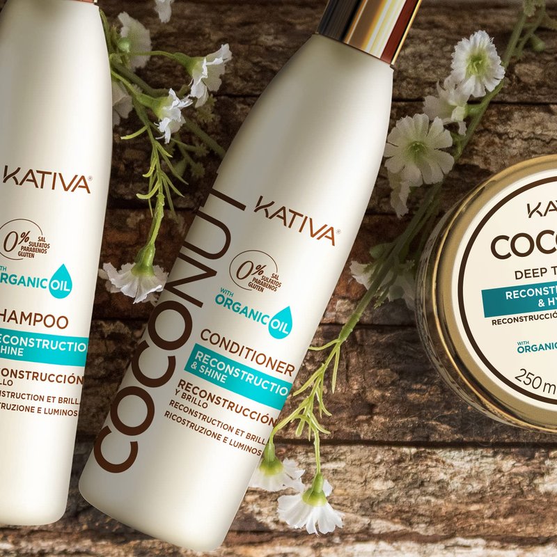 KATIVA Organic Coconut Oil Conditioner (8.45 Fl Oz), Coconut Shampoo to Rebuild and Repair Shiny & Silky Hair, for Damaged, Sensitized, Dehydrated & Dull Hair, Sulfate Free, Gluten Free, Paraben Free