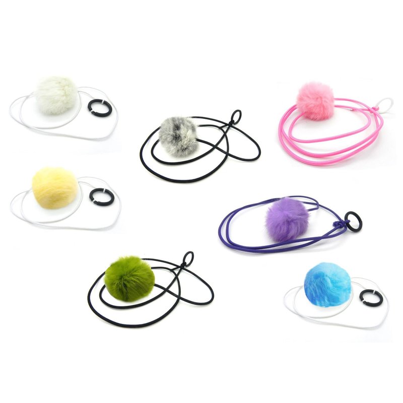 - Colorful Purple fur pom pom cat toy on a elastic string.