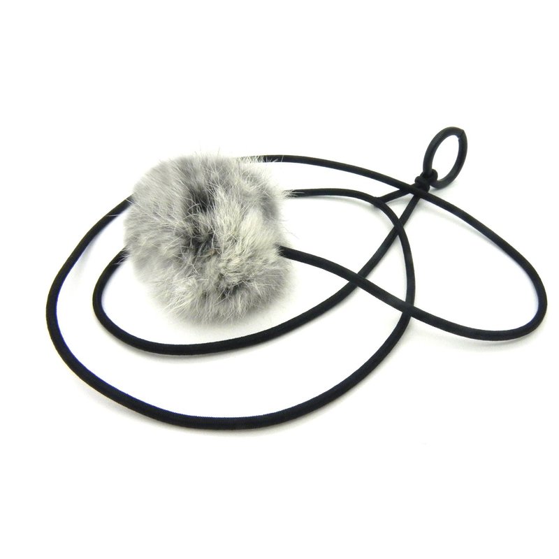 - Real Gray rabbit fur pom pom cat toy on a elastic string.