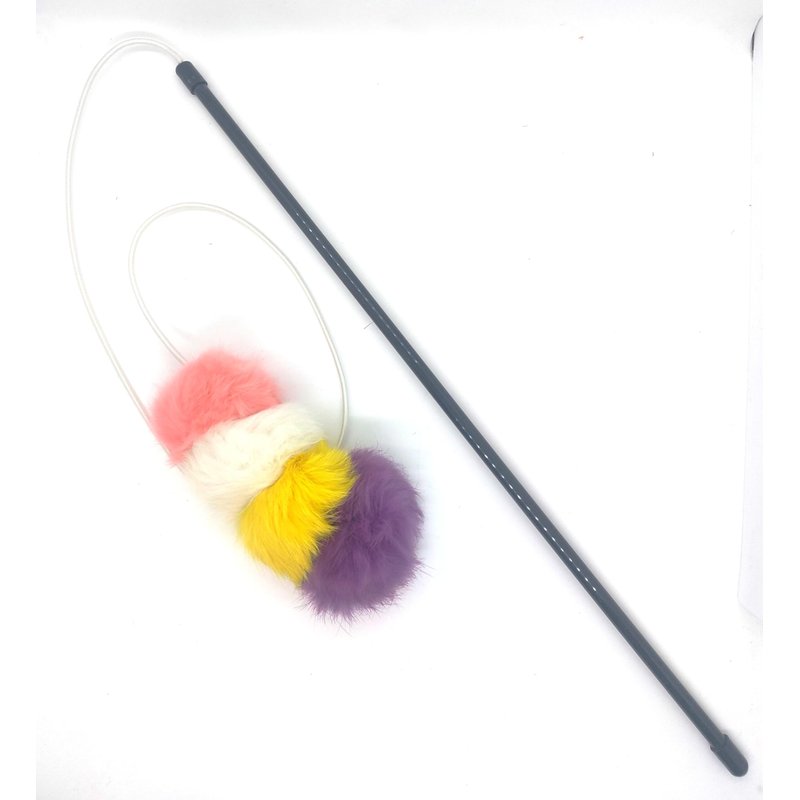 - Cat wand with our colorful rabbit fur pom pom brings out the natural hunting instinct