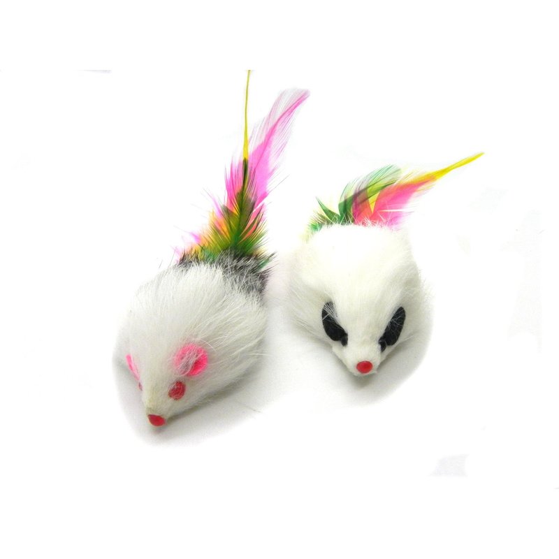 Kats'N Us Real Rabbit Fur Long Hair Feather Tail Mouse Cat Toy - 2pk