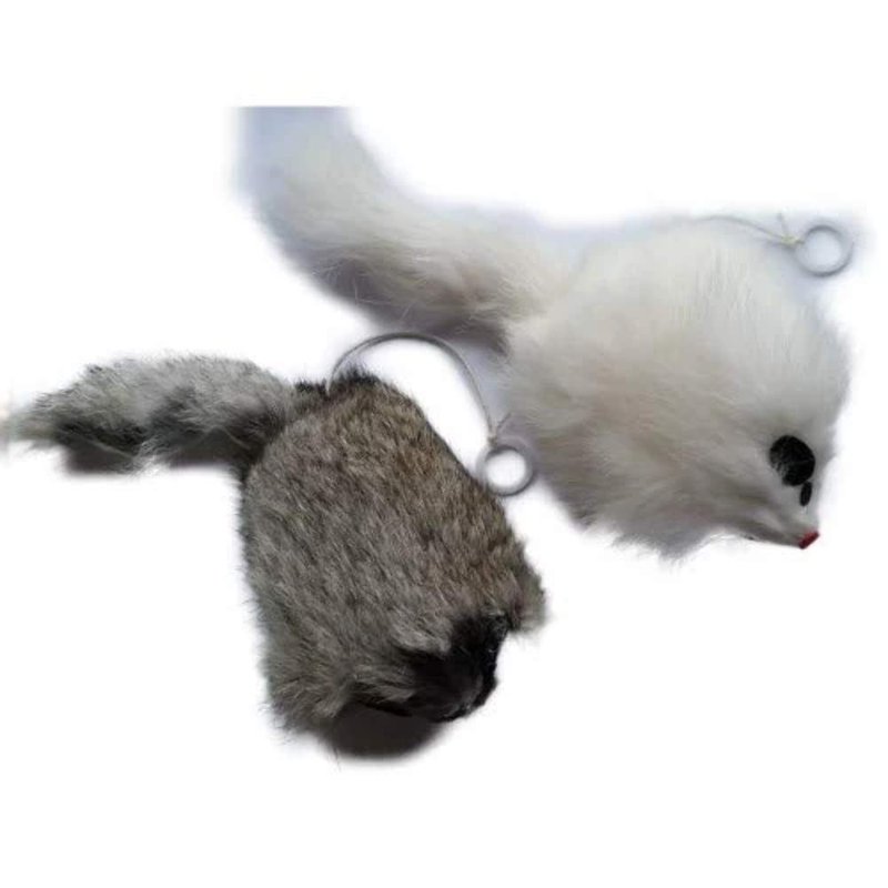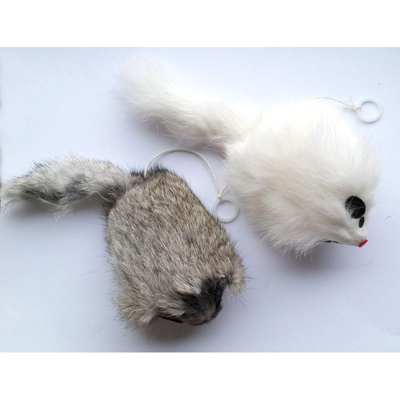 These are a lot of fun. Pull the ring attached string and let it go. The Mouse will vibrate or tremble around on the floor as the string goes back into the toy. Made of Real rabbit fur these cat toys will make your cat think they are real.