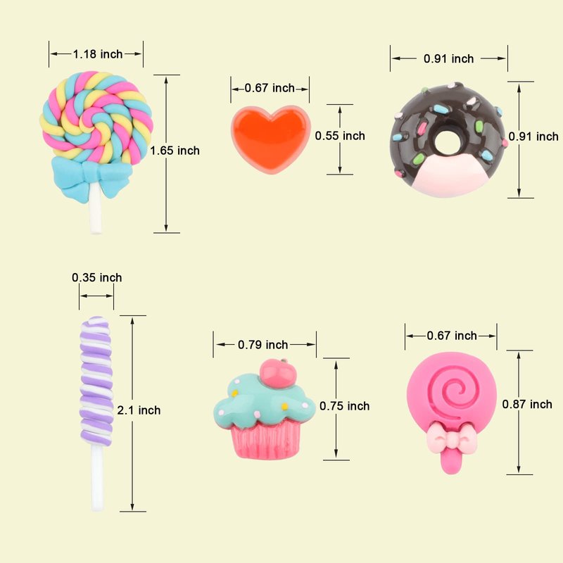 - 【50 Pack Flatback Resin Charms】:slime charms bulk include various candy charms, works pretty good for developing child's imagination, creativity, finger flexibility and it also helps them relieve their stress. It's also a fun way to interact with children, friends and family when they play slime charms with slime.