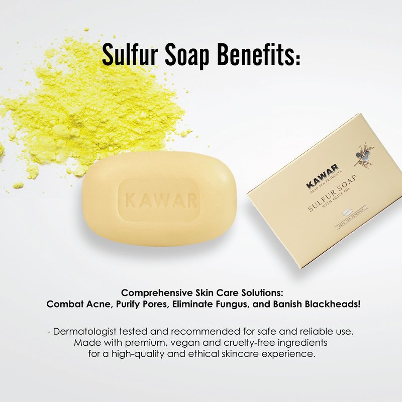 - Powerful Sulfur Soap, or Jabon de Azufre, enriched with Dead Sea Minerals & Olive Oil: Uncover the benefits of our Dead Sea Sulfur Soap, fused with Olive Oil, aimed to nourish the skin for a clearer complexion.
