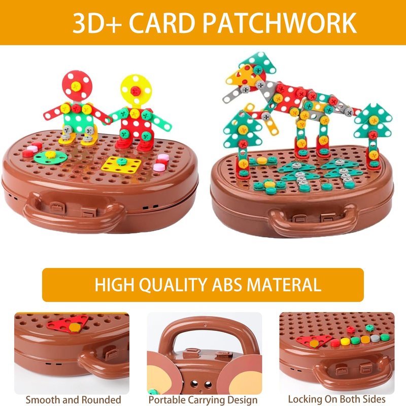 - 【Safety Materials】 Our creative mosaic drill set is crafted from high-quality ABS plastic with smooth, polished edges. The kids drill toy is powered by AA batteries (not included) and operates at a slow speed, so there’s no need to worry about it harming your child
