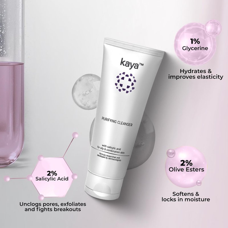 Skin purifying cleanser specially formulated for acne-prone skin - see great results when used with kaya's purifying toner and kaya's purifying nourisher.