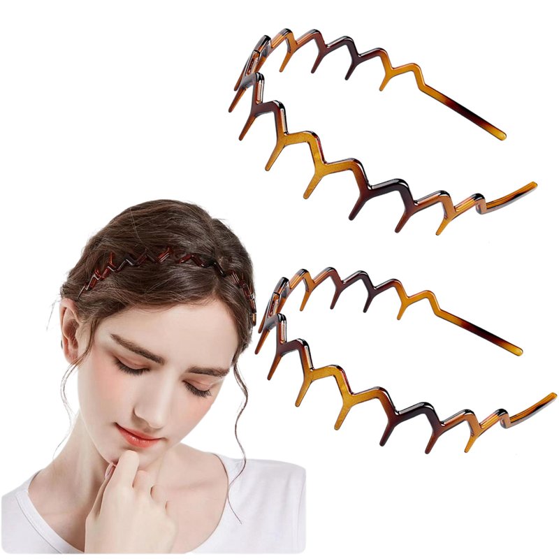 Kayouhua 2 Sets Brown Zig Zag Headbands for Women,Plastic Zigzag Headband Shark Tooth Hair Comb Headband Hair Accessories for Women & Men Washing Face