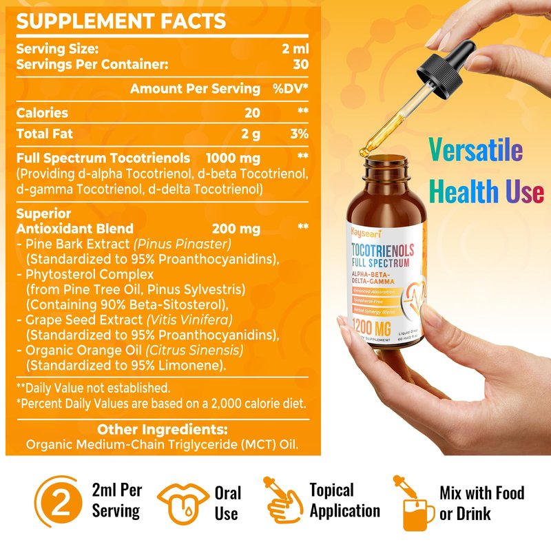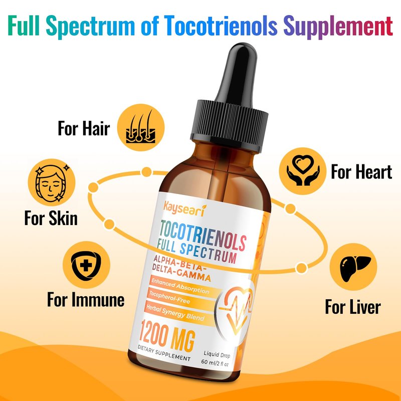 Kayseari Full Spectrum of Tocotrienols Supplement 1200mg- Tocotrienol Vitamin E Liquid,Tocopherol-Free - Superior Antioxidant Blend - Higher Absorption - 2 fl oz,30 Servings