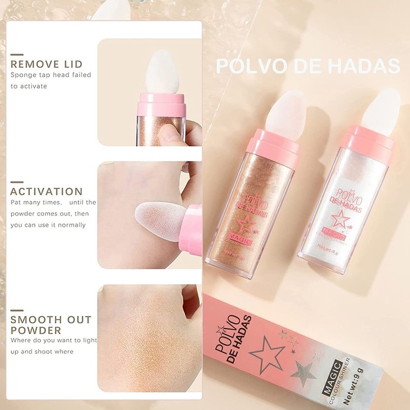 • ✨【Easy to use】 The sponge head is designed and used very conveniently. When using it for the first time, you can tap the bottle body to make the glitter come out of the hole of the sponge head, and then you can directly touch the skin with the sponge head to get more high-gloss powder.