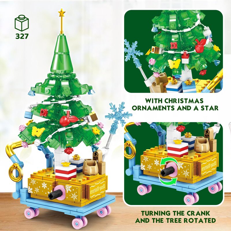 - Grow Creativity :Kids can enjoy building with friends and family over the holidays.After builds,turning the crank,the Christmas tree can be rotated.Encourage kids to get creative with this Christmas tree building toys.