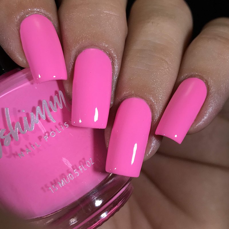 One of my favorite sights in the tropics is the colorful homes accented with hues of pink, teal, blue and yellow. Pink Or Swim is a bright, not quite neon pink cream polish. But, like a faded neon swimsuit, this color still demands attention! Best in 2 coats. As with most pastel shades, these pastel neons can be tricky to apply. We recommend 3 thin layers, letting each layer dry between coats. Some bloggers noted that floating the coats of polish, and reducing the amount of strokes you take with the brush also helps. I hightly recommend following up with a coat of clearly on top, as that gives these shades a smooth look. Type: Cream Base: 5-Free Glitter Load: N/A Glitter Size: N/A Recommended Coats: 2 Coats Notes: All photos are from the same batch, but lighting, skin tones and cameras may affect the brightness and tone. This is not a quick-dry polish, so we recommend following up with a coat of quick-dry top coat. Comparison photos are to short differances between shades, but many not be totally color accurate as a whole.