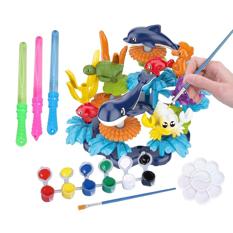 - Creative Play: The Ocean Reef Water Washable Paint & Build Toy Set offers endless hours of imaginative play for children as they develop mechanical and analytical skills. With 37 pieces, children can express their creative skills as they customize and paint their own underwater world filled with colorful coral reefs, vibrant fish, and fascinating marine creatures.