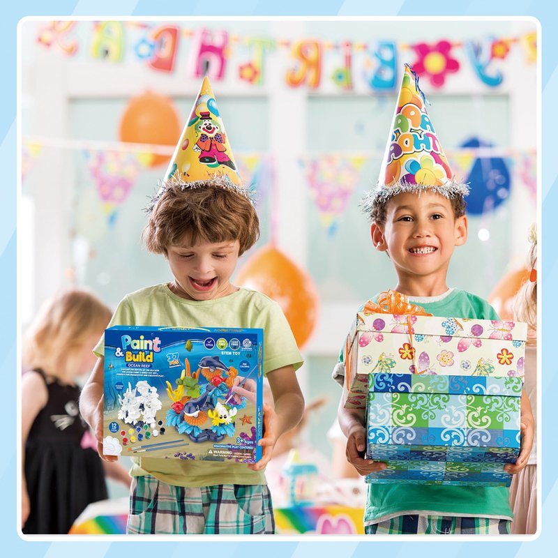 - Creative Play: The Ocean Reef Water Washable Paint & Build Toy Set offers endless hours of imaginative play for children as they develop mechanical and analytical skills. With 37 pieces, children can express their creative skills as they customize and paint their own underwater world filled with colorful coral reefs, vibrant fish, and fascinating marine creatures.
