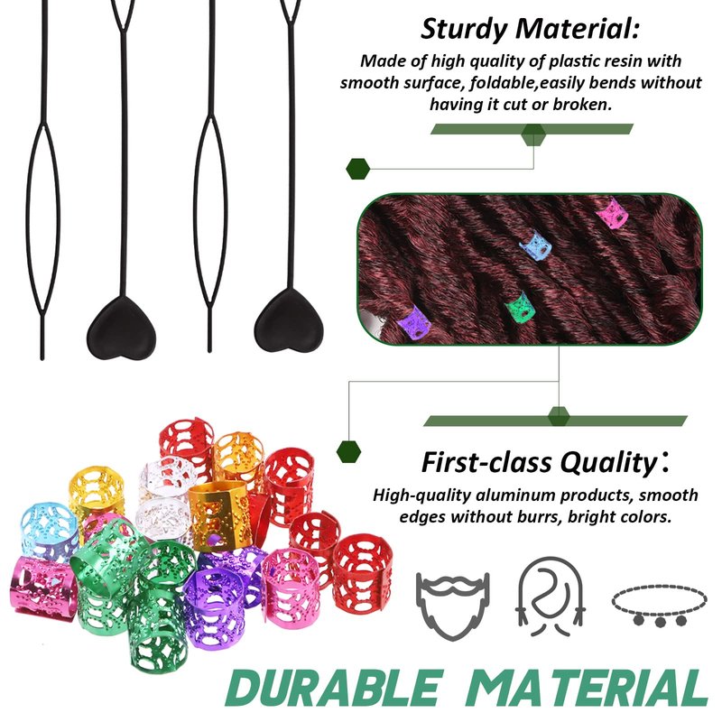 - 【Easy to Become Fashion】 Firstly find the position of the viking beard beads and place your hair in the round hole of the threading tool. Secondly insert the tip of the pull hair pin into the hole of the beard bead. Thirdly gently pull the end of the hair through the bead and pin it on your hair. Now you get fascinating hairstyle!!!