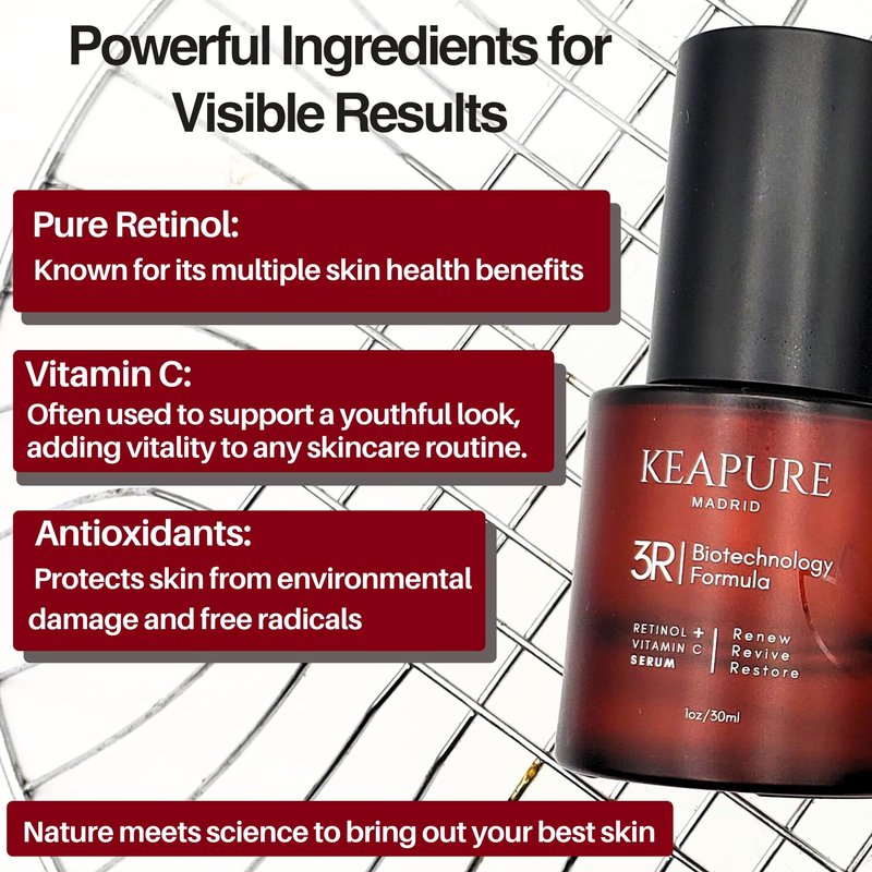 Keapure 3R Revitalizing Serum with Retinol & Vitamin C for Sensitive Skin – Hydrating, Firming, Non-Irritating Formula, 30ml