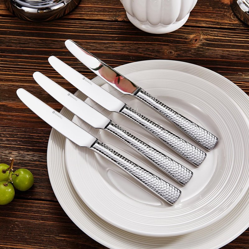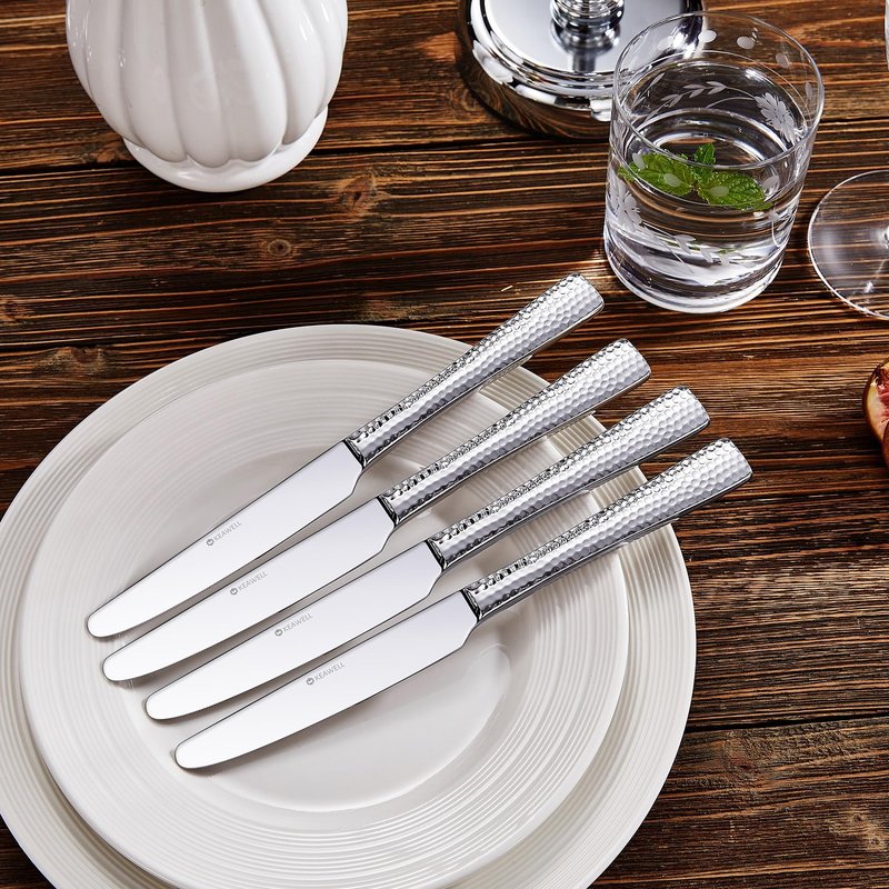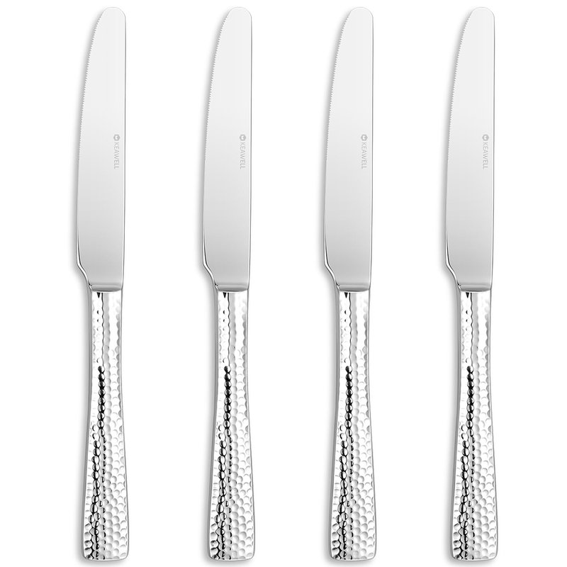 KEAWELL Premium 9.5" Louis Dinner Knives, Set of 4, Stainless Steel Dishwasher Safe, Serrated Knives (Hammered)