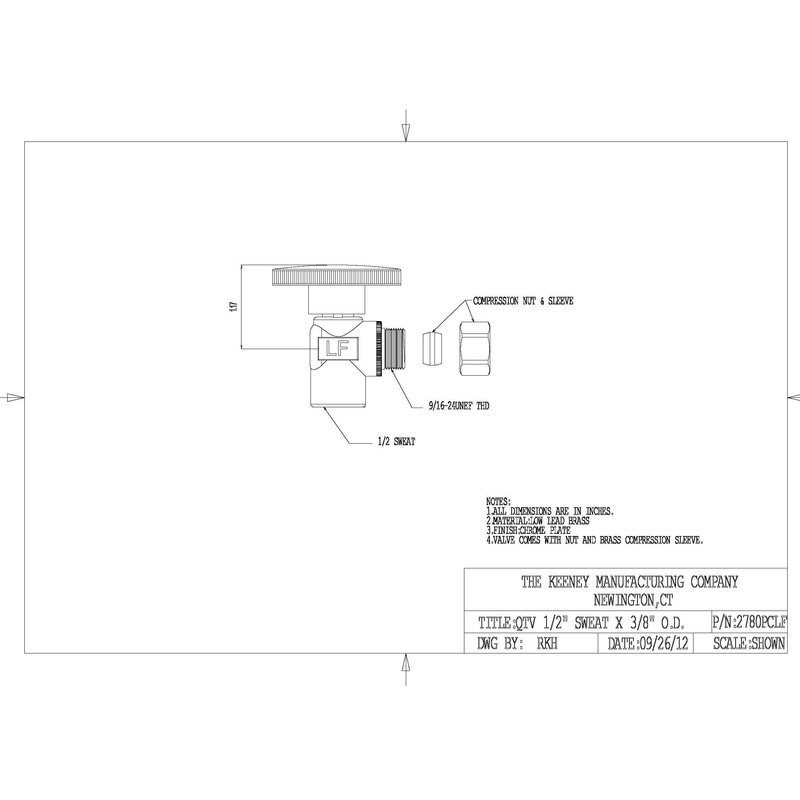 Keeney 2780PCLF 1/2-Inch Copper Sweat by 3/8-Inch O.D. Quarter Turn Angle Valve, Chrome