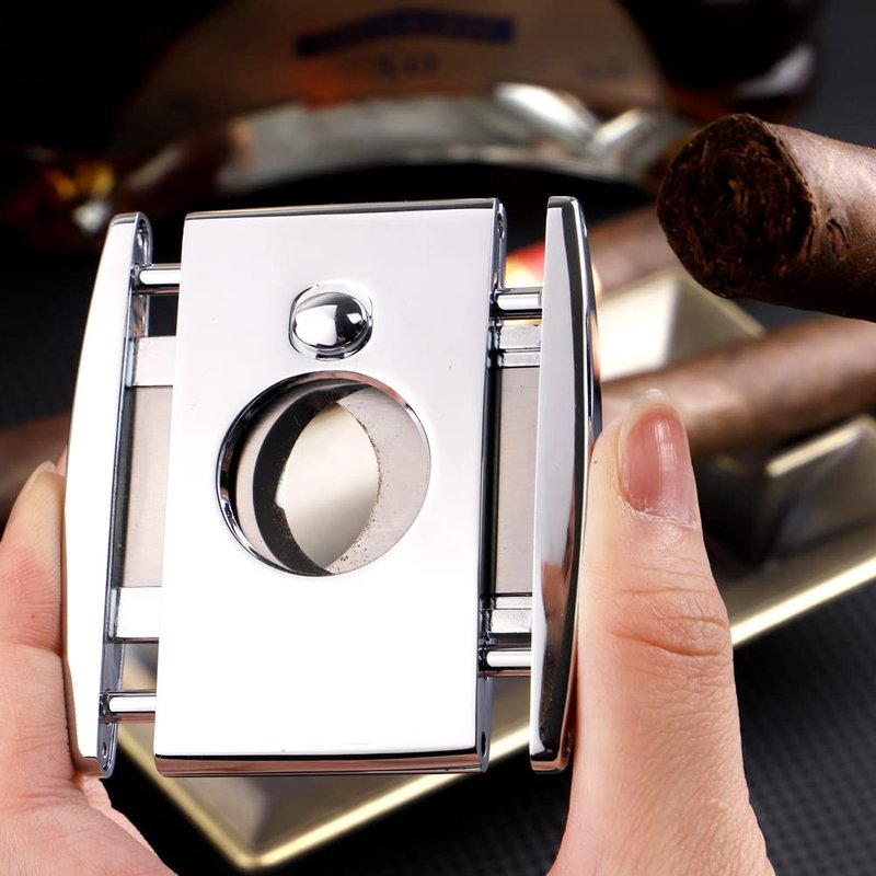 - High Quality: The shell material is made of zinc alloy, which has a high degree of non-slip and corrosion resistance. The double blades made of 420J2 stainless steel are sharp, hard and rust-proof.The precisely designed blade angle provides the best cutting depth, cutting cigars easily and smoothly without damaging the cigar cap.