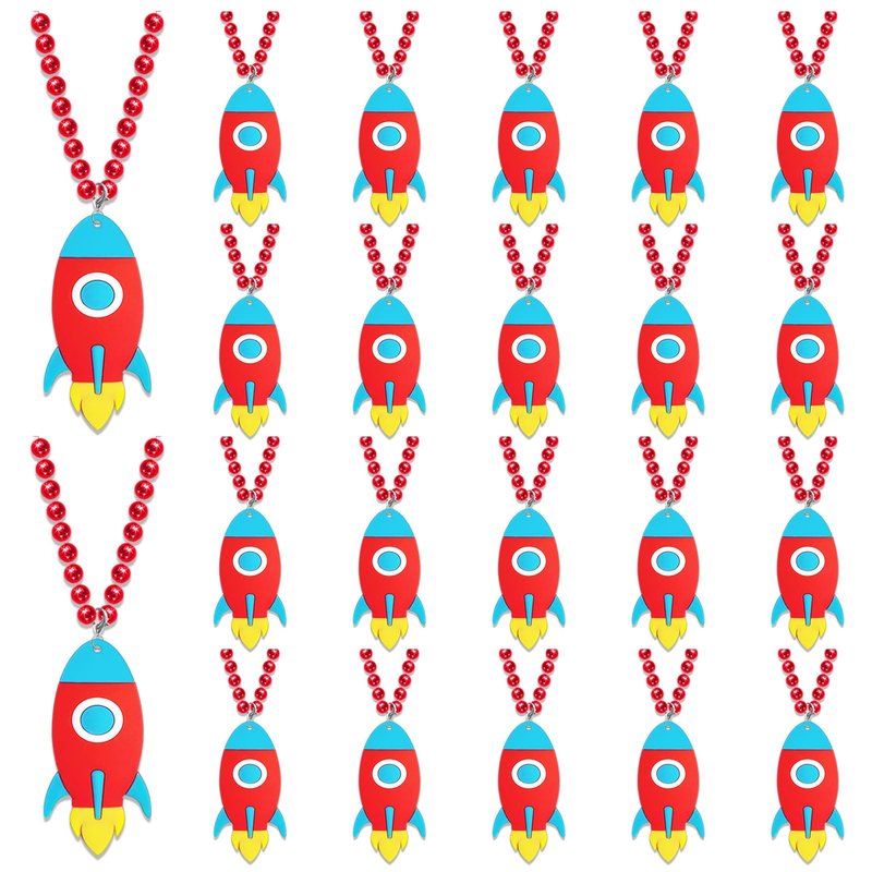 KeeStar 24 Pack Rocket Necklace Party Favors for Baby Shower, Birthday Party Goodie Bag Fillers, School Carnival Rewards, Photography Props, Home Decorations, Classroom Prize