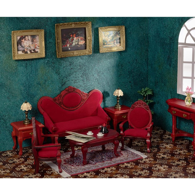 - EXQUISITE CRAFTSMANSHIP: The mini furniture is made by an old carpenter with five years' experience, so realistic. Made of solid wood, strong and wear-resistant. The surface has been polished repeatedly and is very smooth. The old carpenter carved exquisite patterns on the sofa and armchair. What a perfect classical dollhouse furniture! It's sure to impress whoever owns it!
