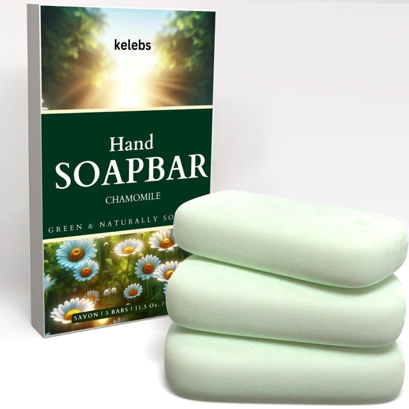 KELEBS Hypoallergenic Hand Soap Bar for Sensitive Skin - Natural Hydrating Chamomile Oil, Nourishing & Eco-Friendly, Bulk Pack of 3