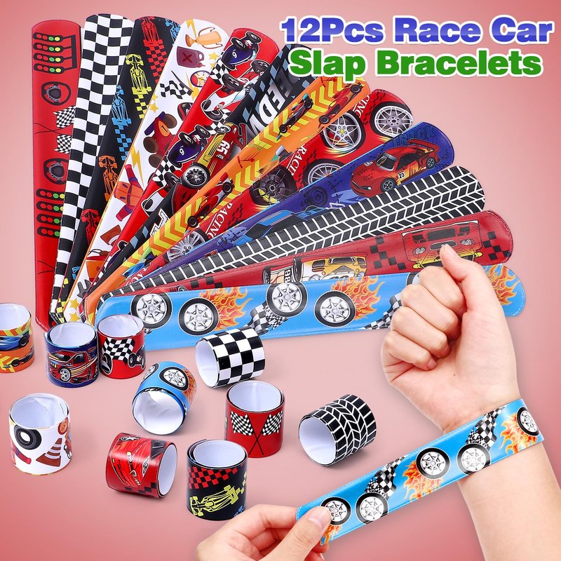 - COOL RACE CAR PARTY FAVORS KIT: Make your race car themed party truly enchanting with our 98 captivating race car birthday party supplies. Our set includes 50 stickers, 12 decorations, 12 straws, 12 slap bands in 12 styles, 12 bubble wands. These fun race car party favors for kids will add fun to your racing themed party and all the kids will be impressed