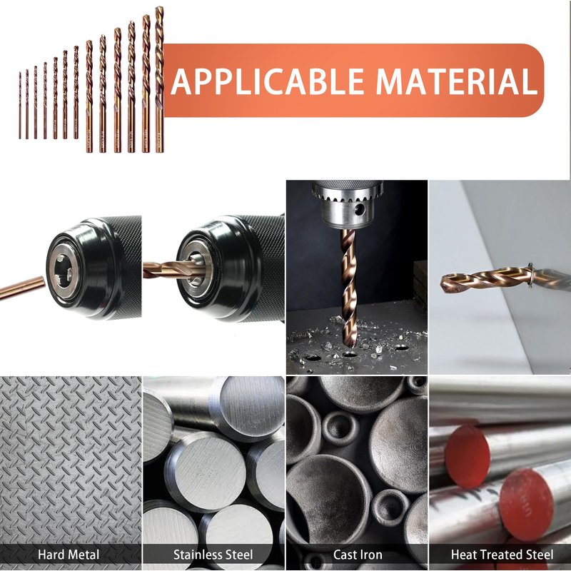 - More comprehensive applications: The cobalt drill bit set can be used effectively on most soft and hard objects, such as stainless steel, cast iron, high temperature alloy, titanium alloy, plastics and woods.